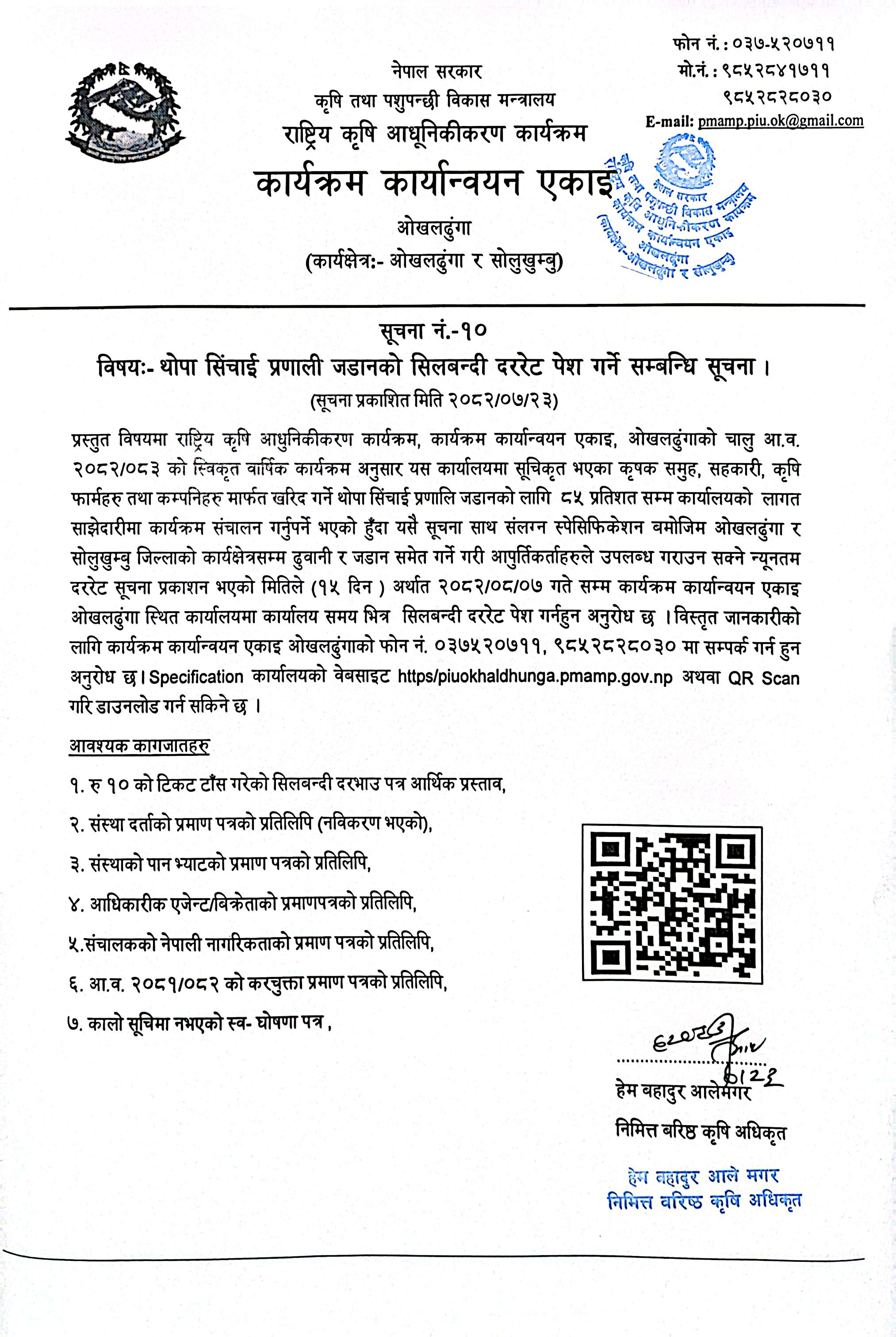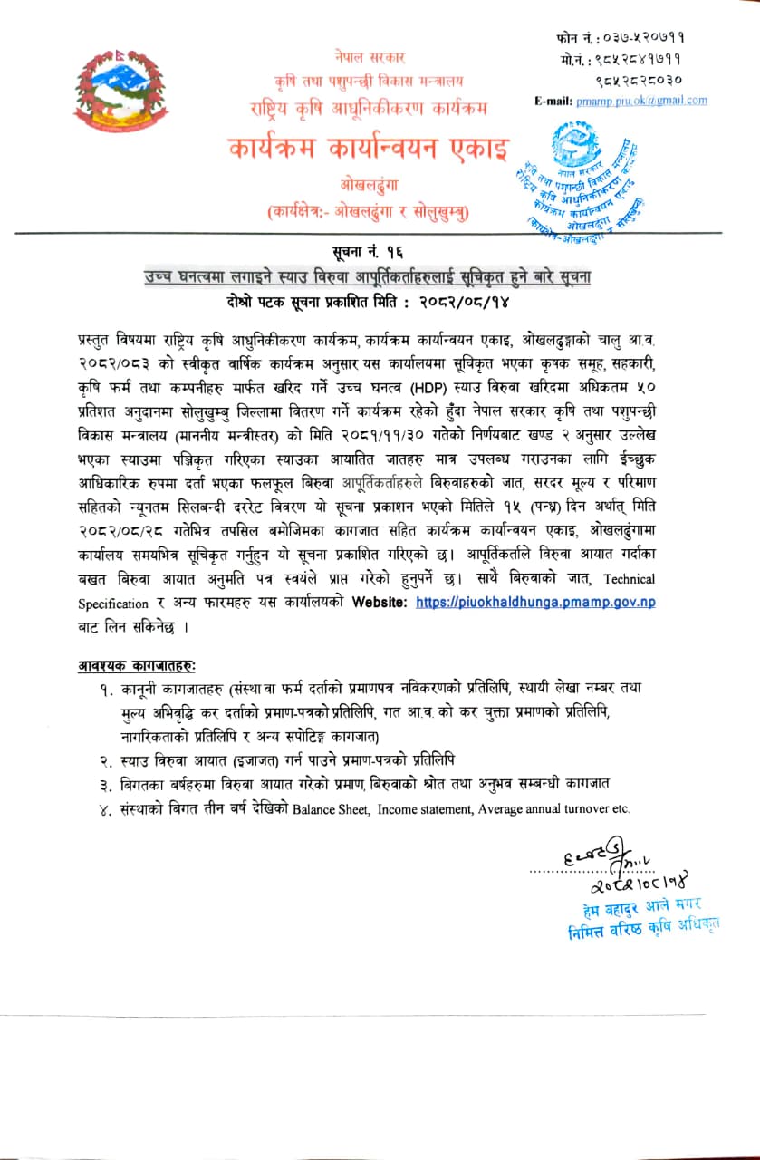 प्रधानमन्त्री कृषि आधुनिकीकरण परियोजना, परियोजना कार्यान्वयन एकाइ, ओखलढुंगाको आधिकारिक वेवसाइटमा स्वागत छ |