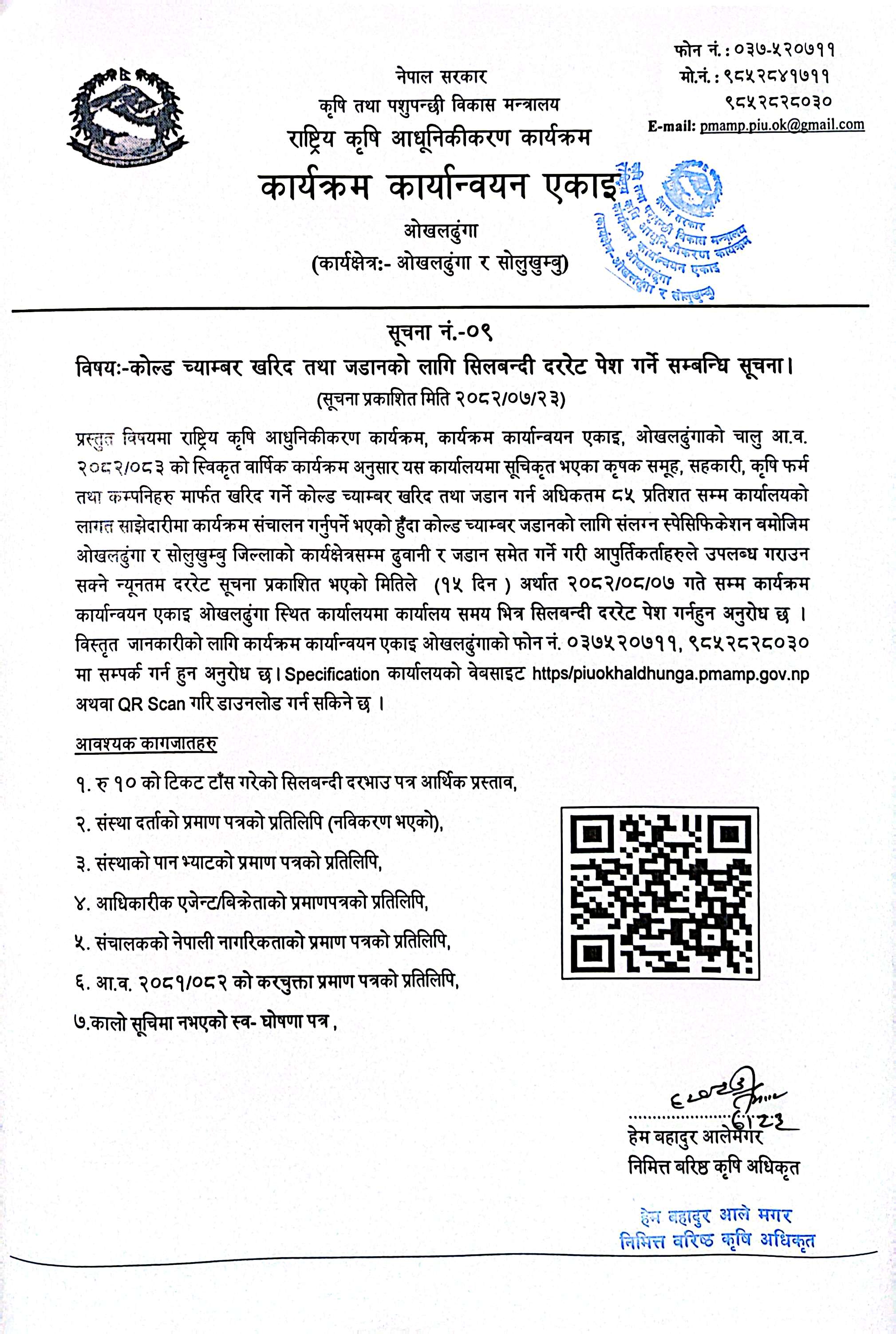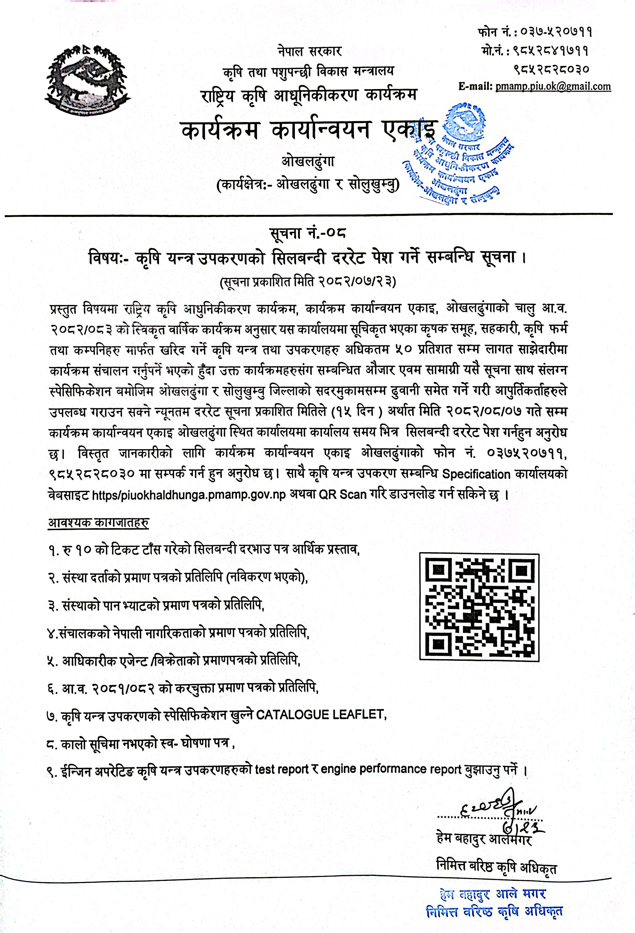 प्रधानमन्त्री कृषि आधुनिकीकरण परियोजना, परियोजना कार्यान्वयन एकाइ, ओखलढुंगाको आधिकारिक वेवसाइटमा स्वागत छ |